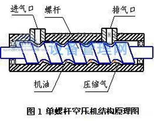 螺桿式空氣壓縮機:用可靠性高的螺桿式空壓機取代易損件多、可靠性差的活塞式空壓機,已經成為必然趨勢。根據統計:日本螺桿壓縮機1976年僅占27%,1985年則上升到85%。而螺桿空壓機市場占有率為80%,并保持上升勢頭。螺桿空壓機有雙螺桿與單螺桿兩種。雙螺桿空壓機的發明比單螺桿空壓機晚十幾年,設計上雙螺桿式空壓機更趨合理、先進。雙螺桿空壓機克服了單螺桿空壓機不平衡、軸承易損的缺點,具有壽命長、噪音低、更加節能等優點。八十年代技術成熟后,其應用范圍在日漸擴大。優點是:運行時噪音低,長時間運行供氣穩定、維護簡單、使用壽命長等特點。缺點是:目前價格較高,制造精度和要求較高。